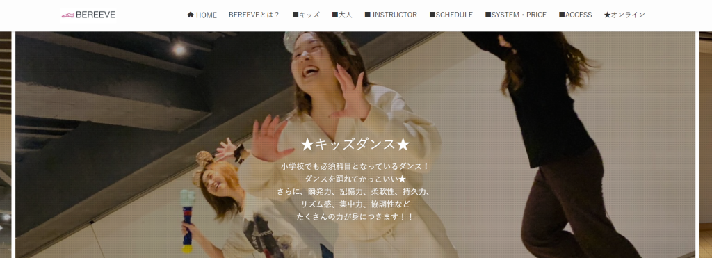 初心者の為のダンススクールBEREEVE楽しんでダンスをさせたい🌟少人数でじっくりレベルアップしていきたい🌟そんなお子様向けのダンスレッスンです!小学生レベル、中学生以上レベルとお子さまのレベルに合わせてクラスを選べるのも特徴。BEREEVEではダンスの技術だけでなく「表現力」「集中力」「豊かな心」など様々な心をはぐくみます♪